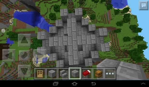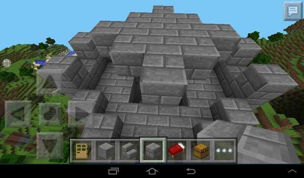 Hacer una cruz en el pilar de los brazos deben estar a 2 cuadras de largo. Luego añadir un bloque en cada esquina.