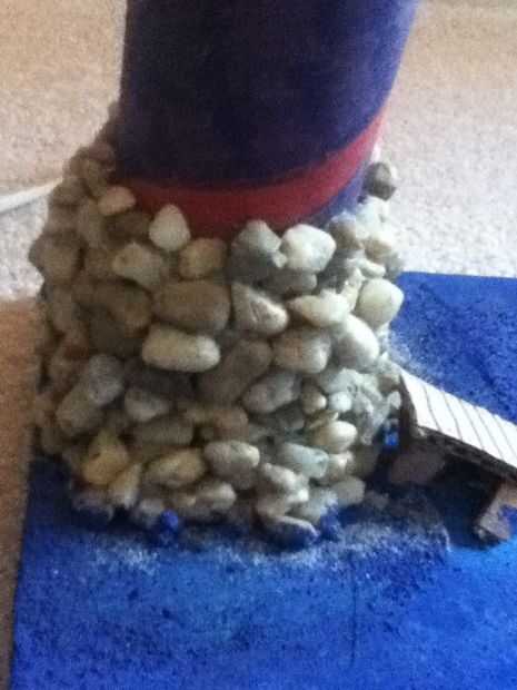 Haz un manojo o guijarros pequeños y lo pegamento caliente que palo solo alrededor del eje del todo para parecerse a la imagen