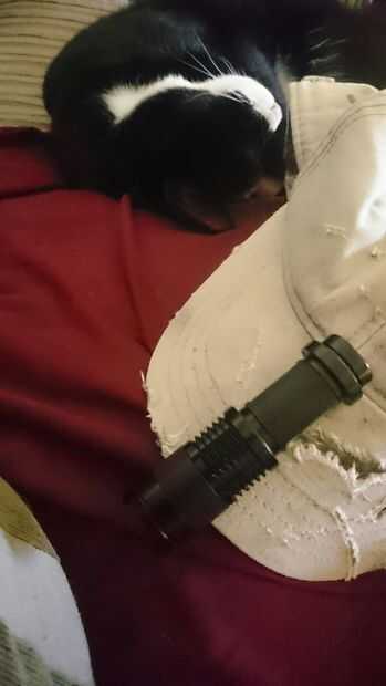 ahora coge su linterna fiel y el clip por el agujero del hilo de rosca