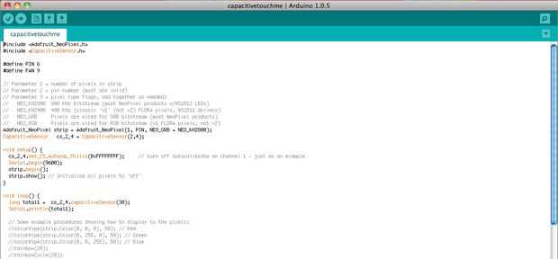 Es una combinación de código de biblioteca de táctil capacitiva de Arduino y código de neopixel de Adafruit.