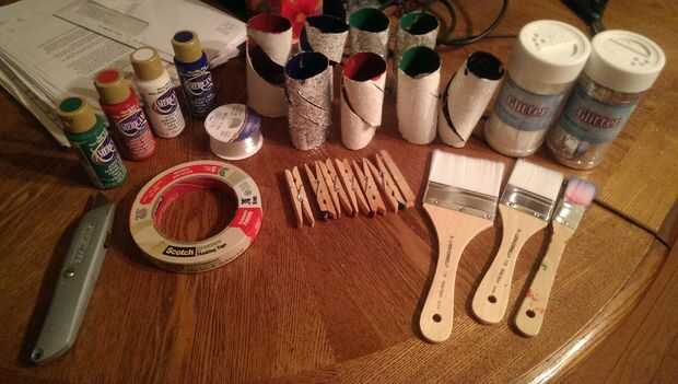 Faroles de Navidad añadir un toque de vacaciones sobre puertas y también pueden actuar como centros de mesa en las mesas cuando estás pasando tiempo con su familia. Estos centros de mesa son hechos de papel higiénico, pintados y decorados con purpurina y suspendidos bajo una luz para añadir decoración a la época navideña. Utiliza rollos de papel higiénico (cartulina), la Navidad linternas son una representación de las tres R de - reducir, reutilizar, reciclar, pero lo más importante, upcycling. Reducir/reducción es reducir los residuos que se desechan o eliminarse. Reutilización es el uso de un objeto o elemento para un diverso propósito o función que no sea de lo que se pretendía originalmente. El reciclaje es la conversión de residuos en material reutilizable. Sin embargo, el aspecto más importante de este proyecto es upcycling. Upcycling es la reutilización de materiales de desecho (en este caso, los rollos de papel higiénico) o crear un producto de mayor calidad (decoración de la Navidad).