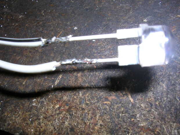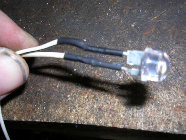 Soldar los cables al LED como sea necesario, recordar poner el calor retráctil mangas en el cable primero, así que usted puede deslícelo sobre la conexión cuando la soldadura se haya enfriado.