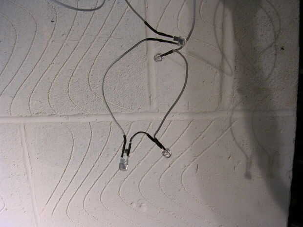 Corta pequeños tramos de alambre del tamaño adecuado para conectar el LED en serie (ver esquema)