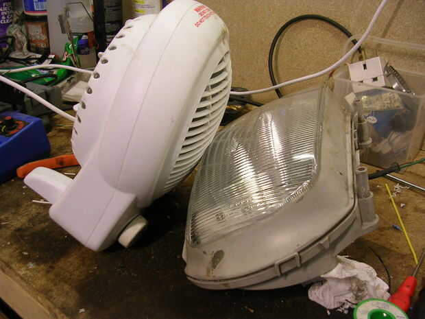 Asegúrese de que no hay es residuos dentro de la unidad y coloque el vaso de vuelta sobre el plástico hacia atrás. les aprete entonces coloque el calentador de ventilador en el vidrio. Coloqué la unidad sobre su parte posterior y punta el calentador sobre él, así que gravedad ayudará ponerlos detrás juntos. Deje que ellos calientan durante 15 minutos y luego con guantes exprimir ellos juntos otra vez el pegamento será fácilmente cementar.