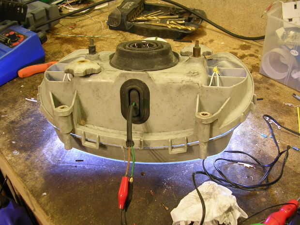 Coloque la unidad en el carenado frontal. Si los agujeros de tornillo están un poco flojos entonces pop un poco de pegamento caliente en el agujero y cuando su fresco redrill un nuevo agujero.