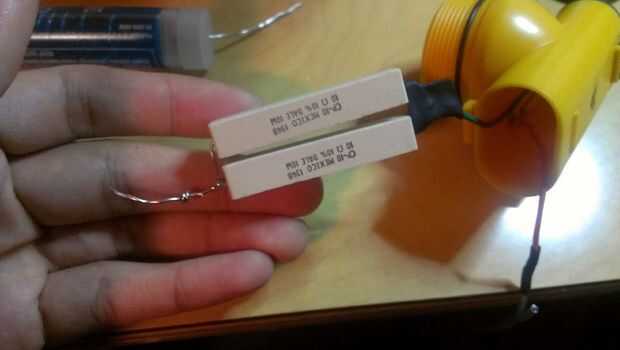 Puesto que el paquete vino con dos resistencias de 10 ohmios, decidí conéctelos en paralelo me da una resistencia de 5 ohm, sin embargo demostró para ser demasiado poca resistencia. Estaba poniendo hacia fuera sobre 800mA de corriente que fue maravilloso porque la luz parecía perteneció a un semi- camión pero se fue poniendo hacia fuera casi 4 vatios de potencia que destruiría mi LED. Acabé de quitar una de las resistencias y fue con la resistencia de 10 ohmios darme 310mA que es todavía brillante, pero su bajo el umbral de seguridad en el LED.