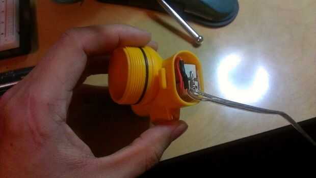 Después de que la resistencia estaba en el lugar que era capaz de perforar un agujero para ejecutar el cableado que irá a la batería que alimenta la lámpara. He sellado todo y había llamado bueno. La resistencia de ajuste bien dentro del compartimiento de batería.