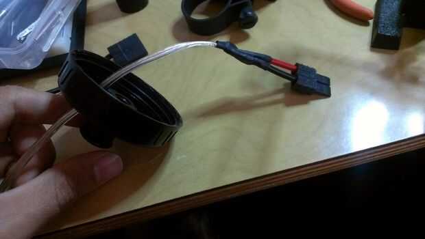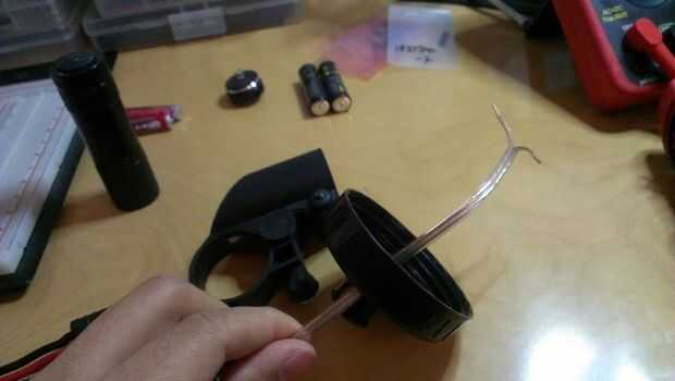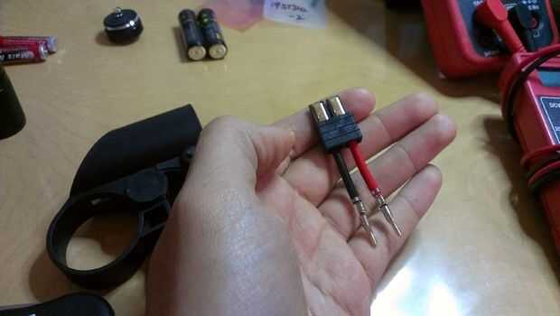 Ahora que el faro se hizo más o menos, montar en la base y comenzó el proceso de conexión del conector de la batería a los cables del proyector.