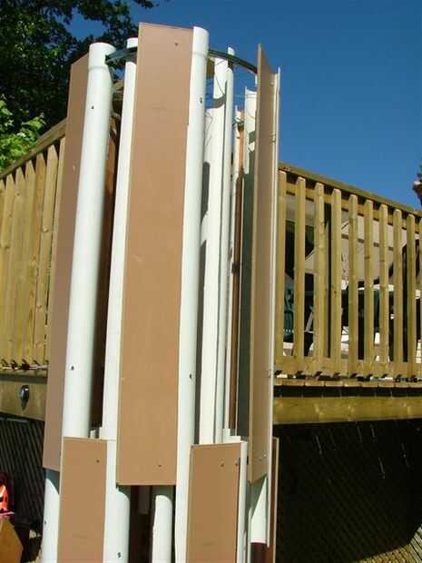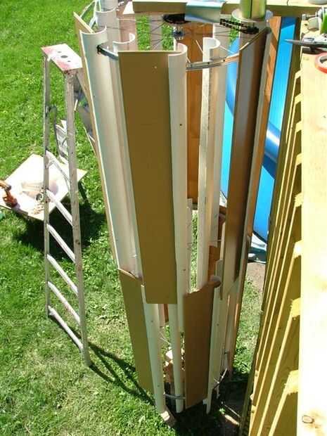 Cuando se hizo la Unión roscada, luego coloqué el pvc como el borde de ataque, muescas pvc para caber a través de la llanta.