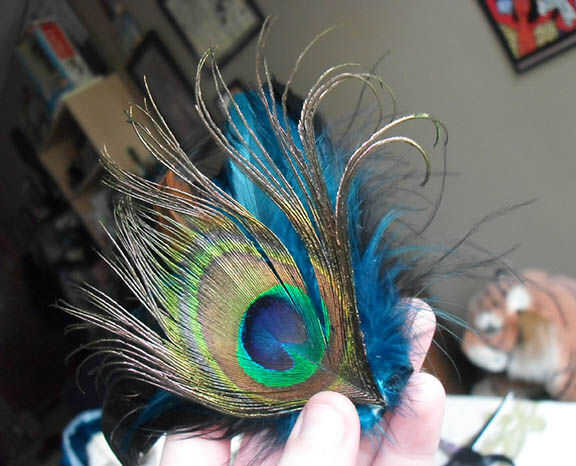 Pavo real ojos hacen una excelente coordinación para un fascinador. No sólo son hermosas, pero poseímos una bandada de pavos reales cuando estaba creciendo, por lo que este pájaro tiene cierta importancia para la mamá y yo.