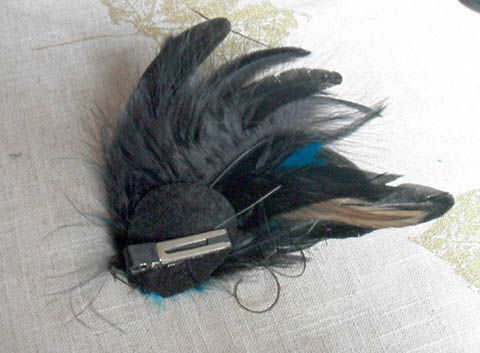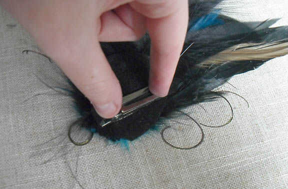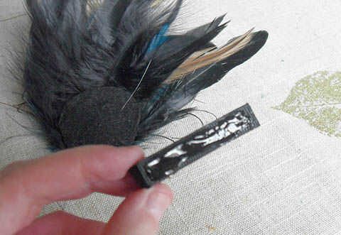 Presione el lado adhesivo cubierto de la pinza en su cojín fieltro. Tener en cuenta que la cabeza (extremo cerrado) del clip debe corresponder con el punto focal de sus plumas.