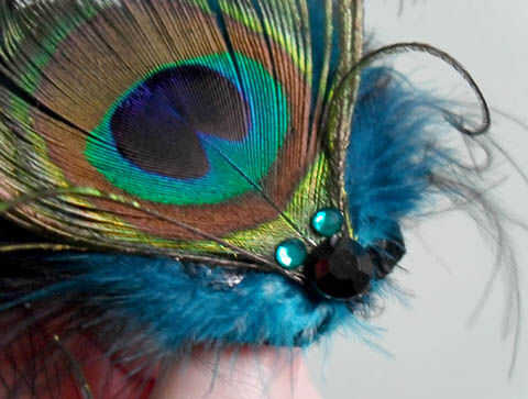 Guardé las cosas simple de fascinator de la madre, utilizando un rhinestone negro mate y 2 más pequeño pavo real verdes.