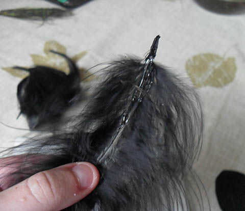 Como base, he elegido 1 pluma de marabú voluminoso. Por lo general son demasiado tenues para frente, pero dan un poco agradable "alimentación" del volumen a la pieza.