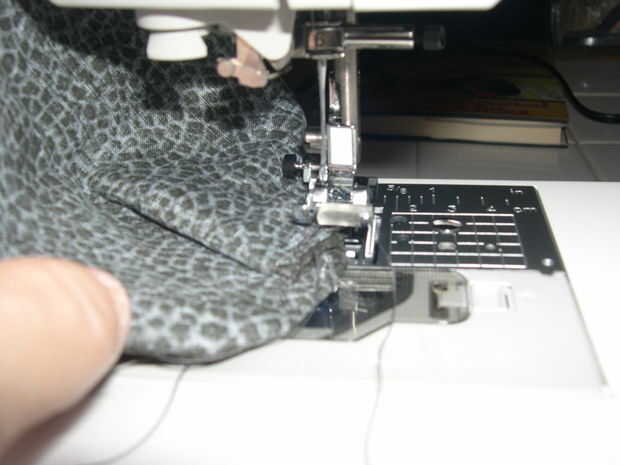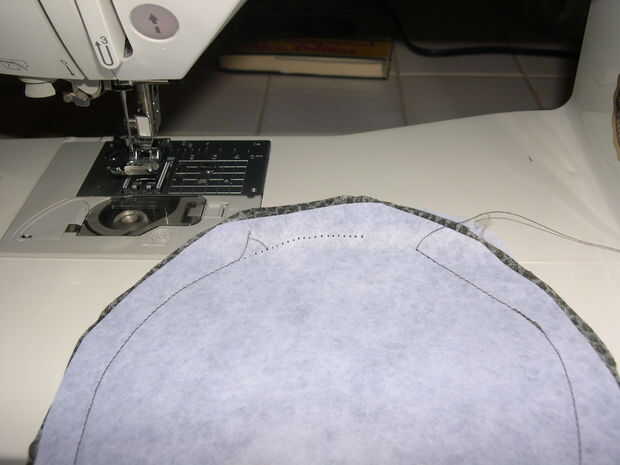 Poner derecho contra derecho de sandwich entre la entretela y material junto. Coser un cuarto de pulgada alrededor del exterior de la costura dejando un aproximado 2 hueco 1/2 pulgada en la parte posterior. Gire a la derecha del sombrero hacia fuera y doblar los bordes restantes dentro de sombrero. Puntada de resbalón o abertura de la puntada la máquina.
