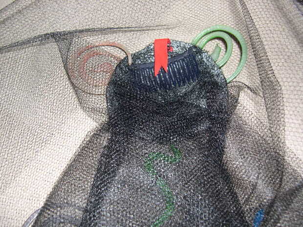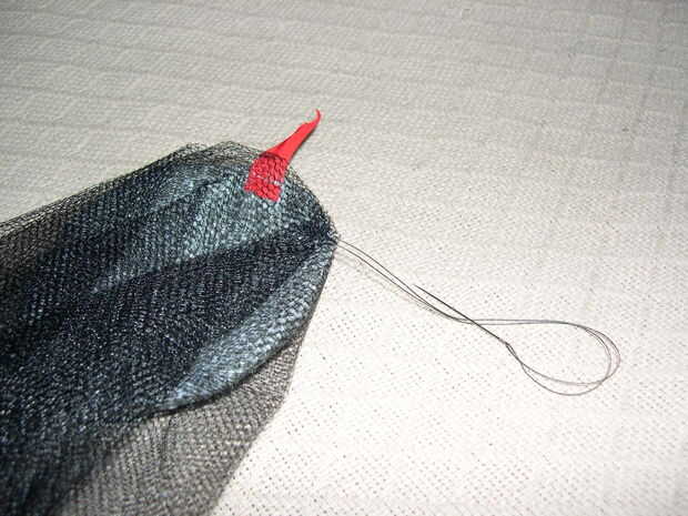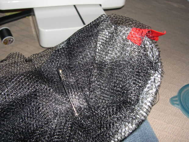 Ya que estaba seguro de cuánto red que iba a usar, corté un pequeño corte en el material de la lengua y deslizado a través de la abertura. Doblé el restante malla alrededor del sombrero.