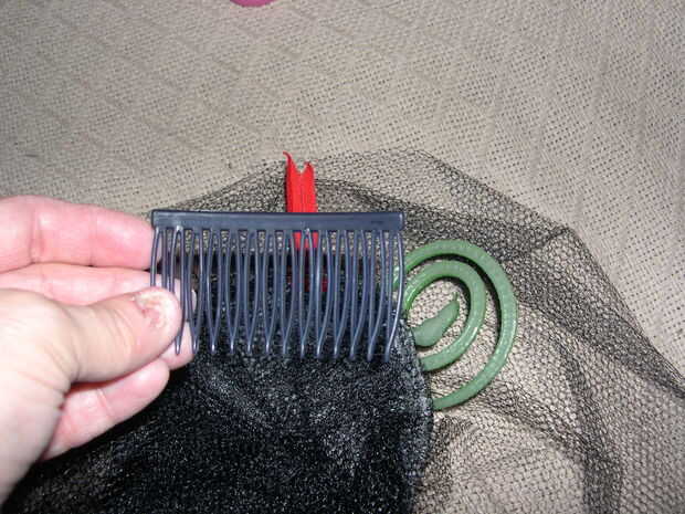 Coloque el peine del pelo en la parte inferior del sombrero. Opté por colocar al frente, pero usted puede cambiar la colocación dependiendo de su peinado.