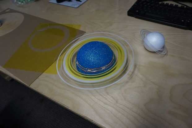 He añadido el acoplamiento decorativo donde conectan los anillos del planeta, pero en retrospectiva, creo que el fascinator de la tubería podría haber mirado mejor sin él.