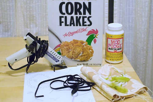 * Pegamento para pegar a la tela a la cartulina. Usé modge podge porque era demasiado perezoso para cavar en el garaje de mi pegamento para tela, pero que funcionaría bien también.