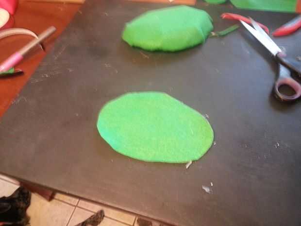 Recorte de fieltro verde para encajar la parte superior de su base y caliente lo pegue en la parte inferior para un ajuste perfecto.