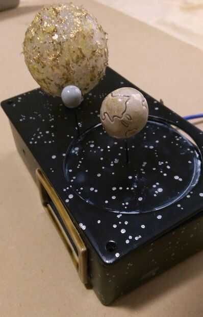 La tierra, la luna y la placa de la pantalla LCD eran todos hechos a mano. Son piezas de cerámica vidriadas. Sin embargo se puede utilizar cualquier cosa para esos tres componentes-estas son las partes que usted puede conseguir creativo con!