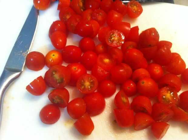 http://www.savynaturalista.com/2013/08/26/cherry-tomato-stir-fryFritada del stir del delicioso Tomate Cherry que sólo toma 10 minutos para hacer y sólo requiere de pocos ingredientesTomate cherry Stir Fry receta:3 tazas de pechuga de pollo troceado1.