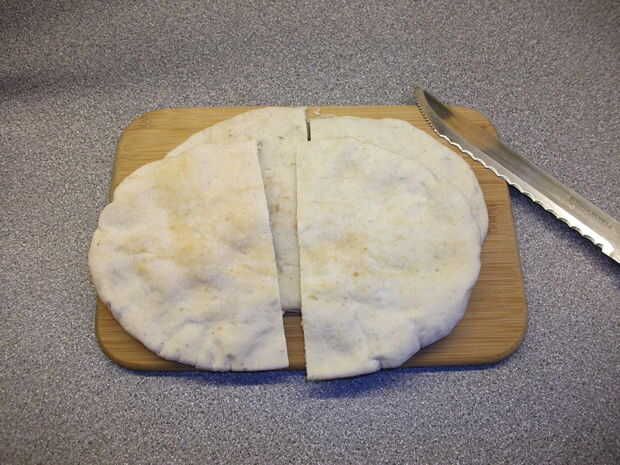 Estamos sirviendo a la ensalada en pitta pan, con lubina cocinada con pimentón y limón