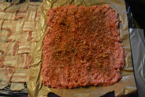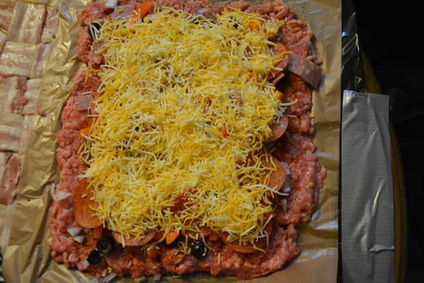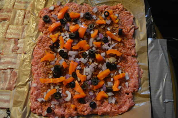 vamos a mostrarte cómo hacer un tocino envuelto, fattie relleno. Puede tomar otra hora de preparación 5-10 minutos, pero el resultado final es bien vale la pena. Si eres un amante de la carne de cerdo, entonces éste es para ti, aunque estoy seguro de