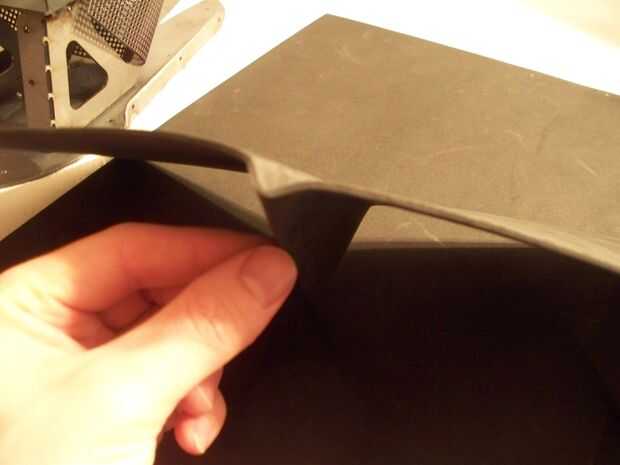 La espuma de artesanía también fue utilizada para los fondos de los cascos para proteger plantas en nuestra casa de amigos para una fiesta de disfraces. Hemos utilizado dos tiras de cinta de 3M VHB doble palo corriendo a lo largo de la suela con remaches en el medio y alrededor del perímetro. Los bordes se fijan con cinta aislante negra. Esto también sostenido mucho mejor que los pisos previstos y protegidos de daño por los enganches de metal.