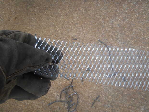 el siguiente paso fue cortar y alambre en algunos ampliado malla metálica comprada en mi ferretería local por aproximadamente $6.00 para una hoja de 2 X 8.