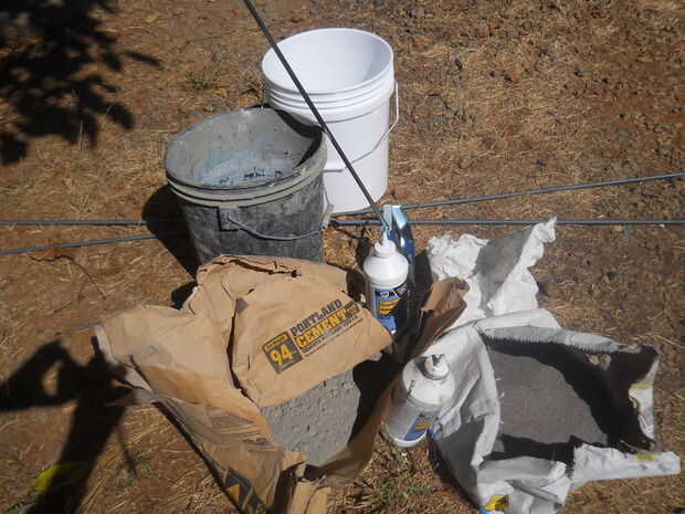 Usar 1 parte de cemento Portland a 5 partes de arena con algunos cortos de fibra de vidrio. puede cortar hasta algún mate de fibra de vidrio y en destrozar. He comprado una bolsa para el refuerzo concreto de una empresa concreta, era aproximadamente $8,00.