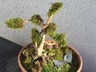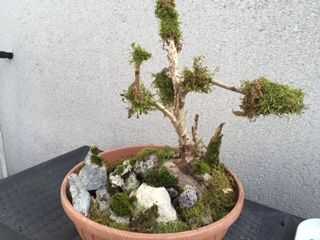 En caso de que usted necesita agregar ramas al árbol necesita garantizar las ramas en el tronco con un alambre de floristería y luego camuflar discretamente con musgo. (Omití, ya que la rama que elegí tenía suficientes ramas).