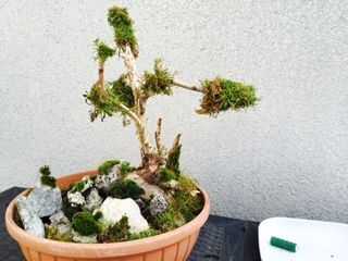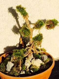 Todo lo que este hermoso bonsai necesita es humedad, rociar cada cuarto día debería ser suficiente.