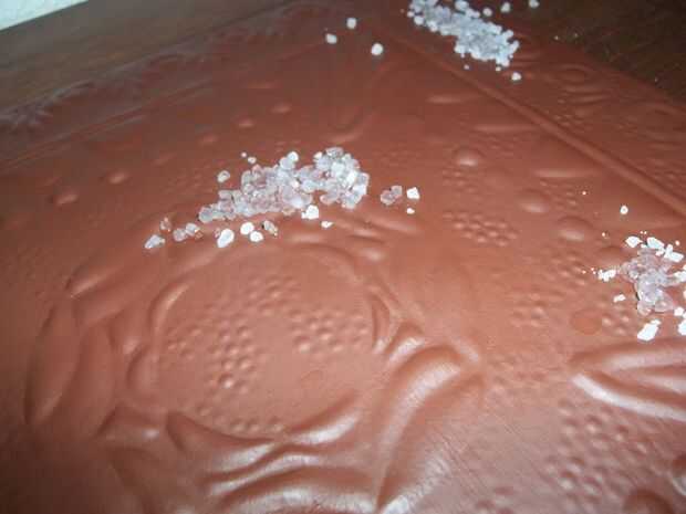 Antes de que tenga oportunidad de secar y espolvorear sal en lugares húmedos, cepillado lejos exceso tan pronto como sea posible. Alternativamente, usted puede poner montones de sal en los lugares donde desea que el moho y después utilice un cepillo, palillo de dientes o su dedo para pequeñas cantidades de agua sobre la sal. La sal húmeda se unen ligeramente a sí mismo y sí mismo a lo largo de la superficie del molde y lo ayude a permanecer en el lugar un poco mejor. Deje que el agua secando.