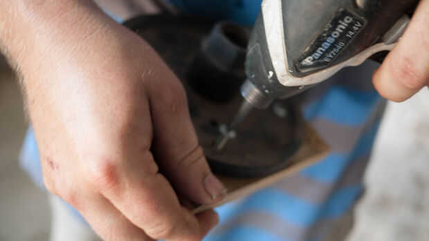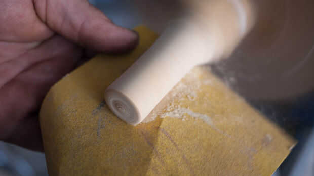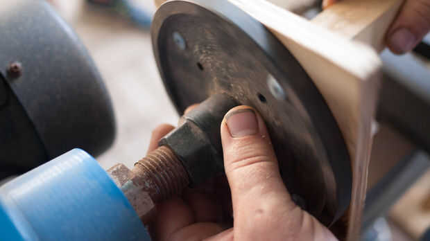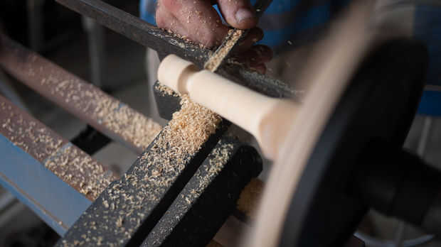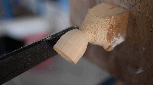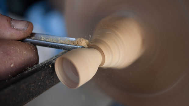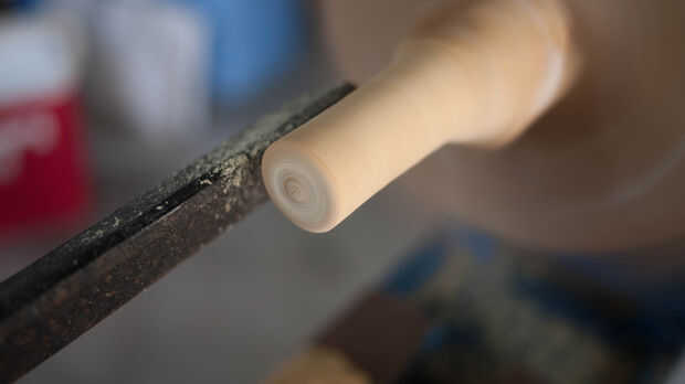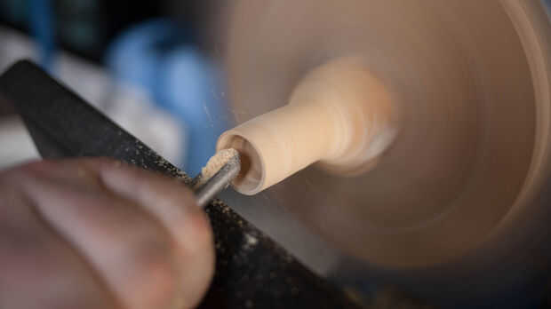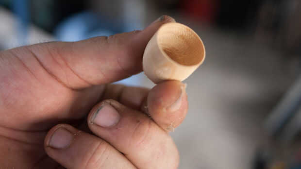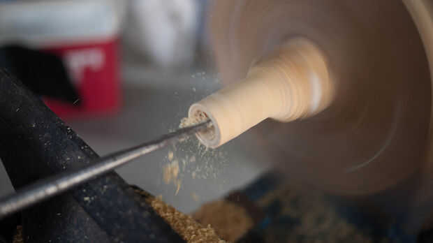Torno diámetro, luego siga por taladrar un agujero en el centro y limpiando con una pequeña gubia de perfil.