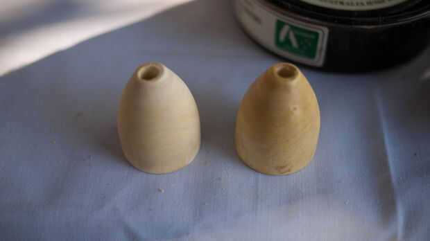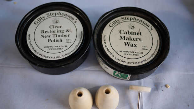 Para este paso usé una Dremel con una rueda que pulimenta limpiarla para aplicar el pulimento y la cera. La razón es cera de abejas necesita calor para realmente penetrar en la madera. Empecé con un pulido de la restauración que es más suave en la madera y contiene más solvente para entrar realmente en el grano. A continuación he utilizado una cera de fabricantes cabinate porque realmente se endurece hasta el acabado de la superficie. Puedes ver el antes y después.