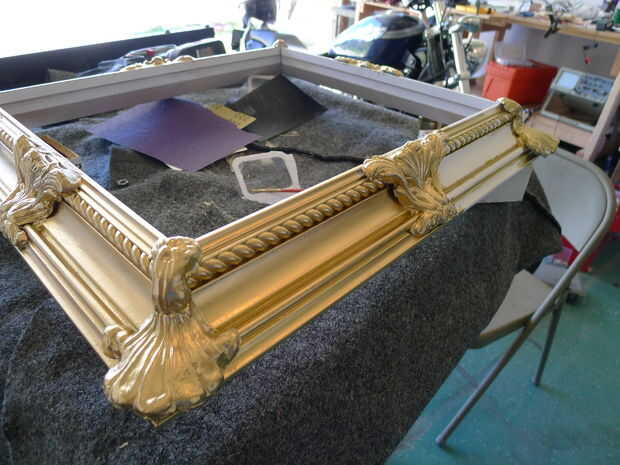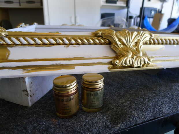 después el bronce y el oro de hoja pintura, "lavé" el marco dos veces una vez con