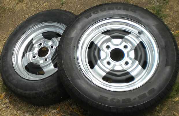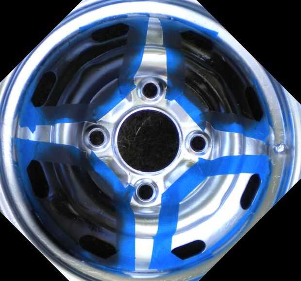En cada rueda, cinta de pintor se aplicó para crear cuatro zonas fuera ocultada. Cada zona incluye dos ranuras de la rueda original.