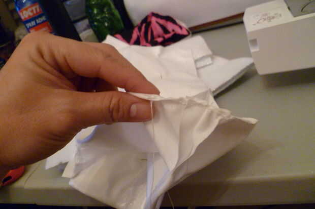 Con los derechos de la tela de frente, coser los 2 lados juntos y coser la parte inferior juntos a lo largo de la línea de costura de.05 pulgada. Nota: tuve problemas con la costura a la tela PUL en mi máquina de coser y tuvo que coser a mano. La tela PUL había mantenido conseguir enredarse.