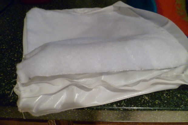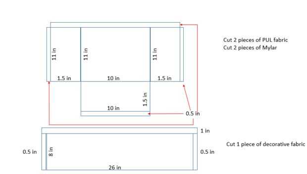 Para el aislamiento de mylar, había cortado la frente, fondo y lados por separado y unido a la tela PUL en el lado equivocado.