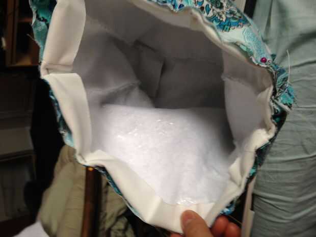 Tome la bolsa y doble revés para que el aislamiento está ahora en el exterior.