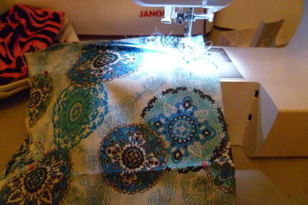 Tome los 2 extremos de la longitud de la tela y coser juntos, dejando la abertura de 1 pulgada para el cordón de lazo tirar a través. Coser los extremos a lo largo de la línea de costura de.5 pulgadas. Para ocultar la costura, doblez a lo largo del pliegue y coser alrededor de.5 pulgada en otra vez.