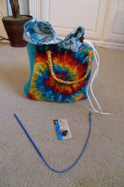 Deslice la guarnición entera en la bolsa de fieltro seca y coser la parte inferior de la pieza del cordón en la parte superior de la bolsa de punto. El pedazo de cordón decorativo se sentará sobre el resto de la bolsa.