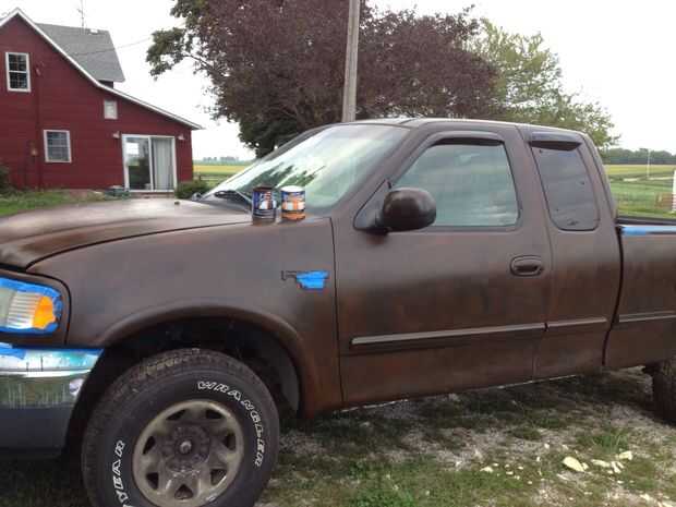 El siguiente paso es poner una capa de pintura color rojo óxido sobre la capa base. La mayoría de los coches más viejos utiliza un primer rojo óxido, que es lo que vamos a duplicar de aquí. Para hacer este color, utilicé una combinación de hugger naranja y negro (4 piezas de naranja a negro 1 parte). No es esencial, especialmente en esta capa, pero es una buena idea mezclar suficiente para cubrir el coche entero antes de su inicio pintura. Incluso si utiliza una pintura taza (que debería utilizar), habrá un poco de variación entre lotes. I mezclar un cuarto de galón de color a la vez y guardar en un recipiente cerrado hasta que estoy listo para usarlo. No es esencial para esta capa, como vamos a poner más pintura en la parte superior, pero ten en cuenta para las capas finales.