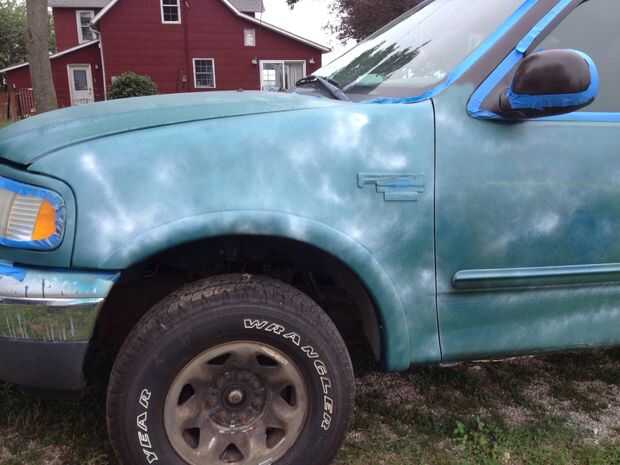 Romper su pintura blanca de spray! Este paso agregará mucho carácter a su trabajo de pintura en el extremo. Aplique una capa fina y ligera de pintura blanca para el cuerpo del carro entero. La clave aquí es una capa delgada. La mayor parte de la capa blanca se enarenadas apagado, pero lo colgaré en cualquiera de los puntos bajos para crear un aspecto envejecido.