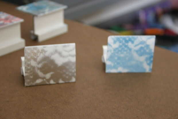 La segunda foto son las piezas espaciadas y volteado hacia arriba después del secado.