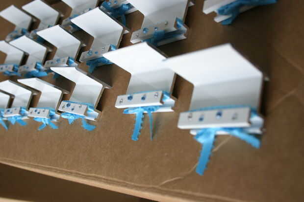 Usar autas adhesivo piedras para decorar la parte superior delantera de la pieza de la pista y atar un arco en el canal delantero usando un trozo de cinta.