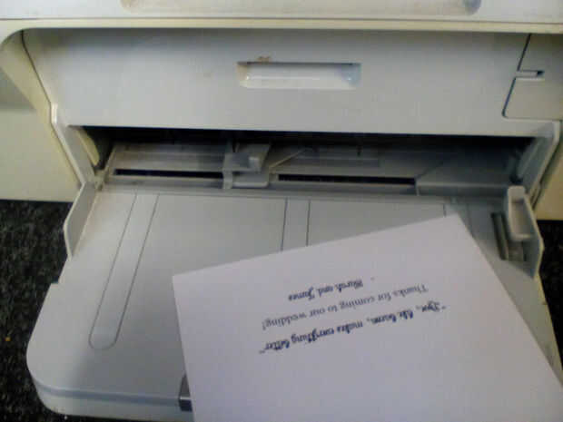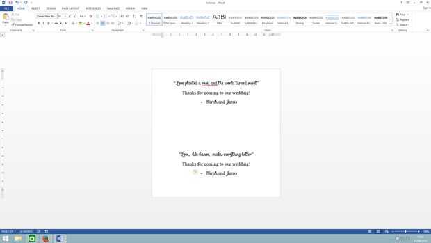 Agregar sus palabras en una fuente bonita (yo escogí tiza mano Letras sombreadas de dafont.com) puede Agregar un mensaje de la novia y el novio al mismo tiempo si usted elige!