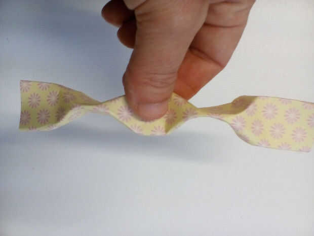 En primer lugar, enrolle la hoja de papel desde el lado largo para formar un tubo. Con tus dedos pulgar e índice, presione hacia abajo en el medio rollo, aplastando el tubo plano bajo el pulgar. Con tu otro dedo y el pulgar, hacer una calabaza similar en ángulo recto a la primera. Continuar haciéndolo a lo largo de toda la longitud del tubo. Y es a su favor completa! Bastante limpio, ¿EH?
