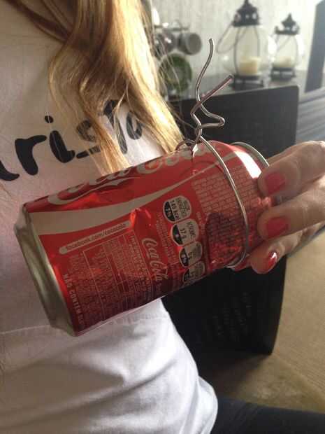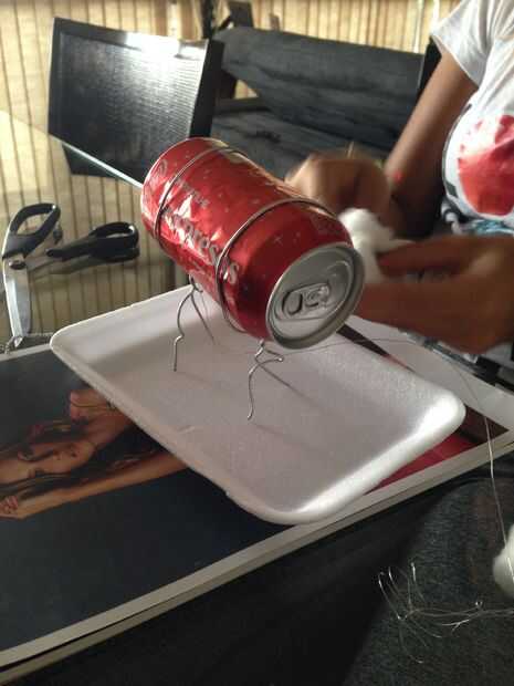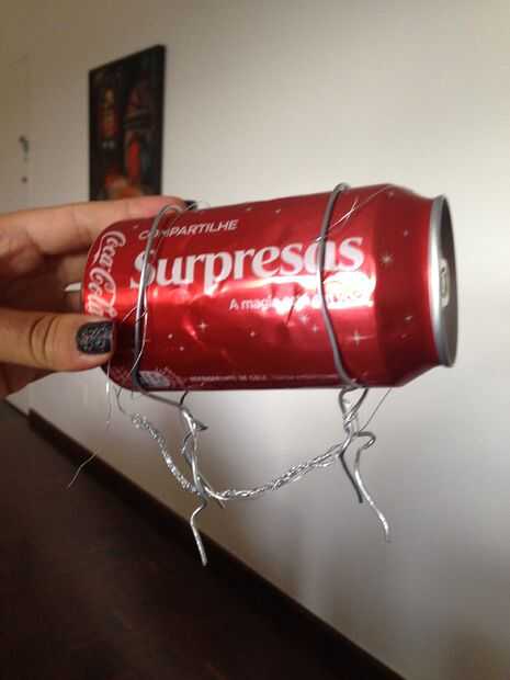 Enrolar un de latinha com o arame Umm modo ela fique equilibrada.