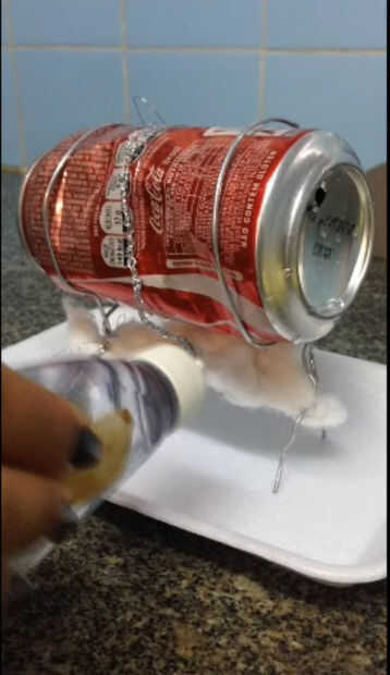 Materias:ÁlcoolDuas latinhasVelasArameMarteloIsoporPregoProcesso:Pegue s una latinha (NAO A ABRA) e faça um pequeno furo com o prego e o martelo na parte de baixo. O furo deve estar sin canto. Los neumáticos todo o líquido dentro da lata e coloque um